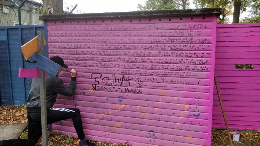 Giving the garden an Alice in Wonderland Theme, Chris explained: “We thought it would be a nice idea for the families if we gave the garden a bit of a theme, said Chris. “We have loosely based it on the story of Alice and Wonderland with the signage and lots of bright bold colours.”