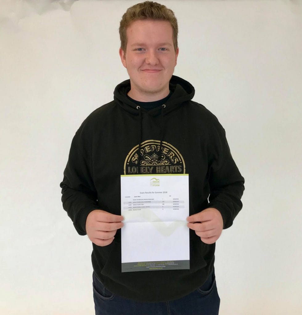 Jacob, 17 (who reminded us he was 18 in 2 days) is a former Ian Ramsey student who has smashed his A Level results and is now on his way to Leeds Beckett University to study Music Production. With an outstanding Distinction* in Music Technology, B in Media and a D in Business, Jacob said his time at SRC Bede Sixth Form was “really fun, the courses were taught so well and I always knew what I was doing. The teachers are so nice and I always felt comfortable.” Jacob had always enjoyed music and hoped to study it at University which is why he choose it as an A Level alongside Media which he thought would be fun. With his fantastic results he will now be following his dream of studying it at a University Level and he says he is ‘hopeful for the future’.