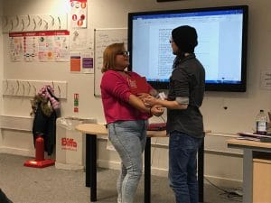The team were split into pairs to come up with a scenario to act out, the rest of the team then had to guess what this was and talk about their body language. Students come up with different scenarios, such as a divorced couple meeting up and seeing someone you haven’t seen in a while, so they could use different types of body language.